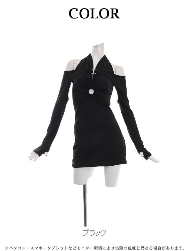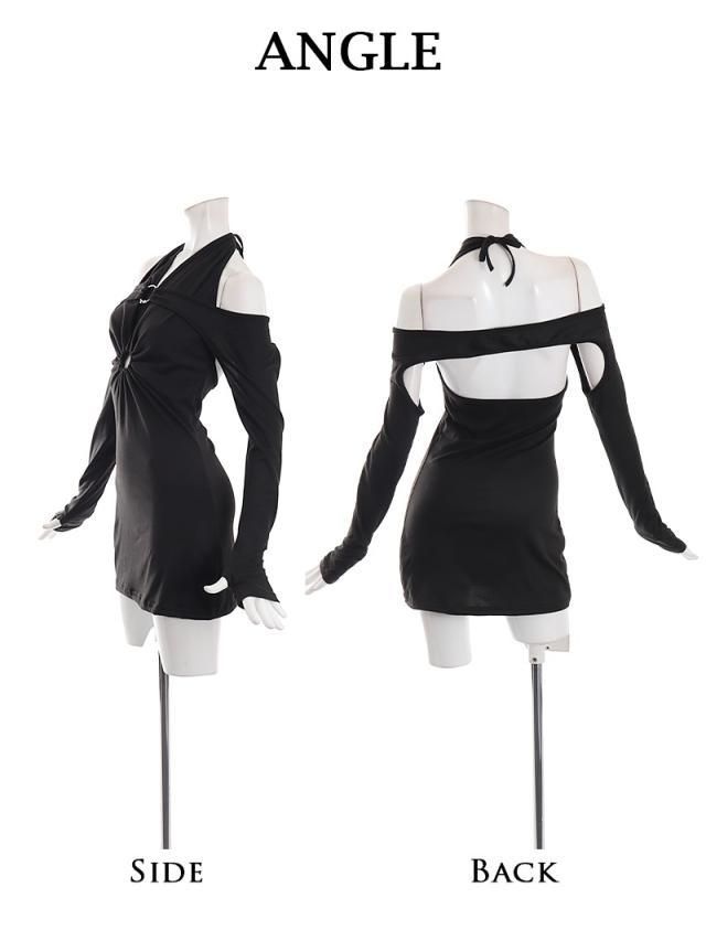☆指穴付きのスーパークロップドトップスにカットアウトがセクシーなホルターネックワンピの2点セット!