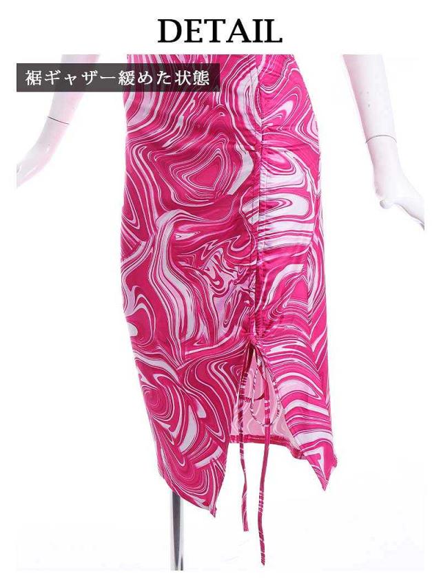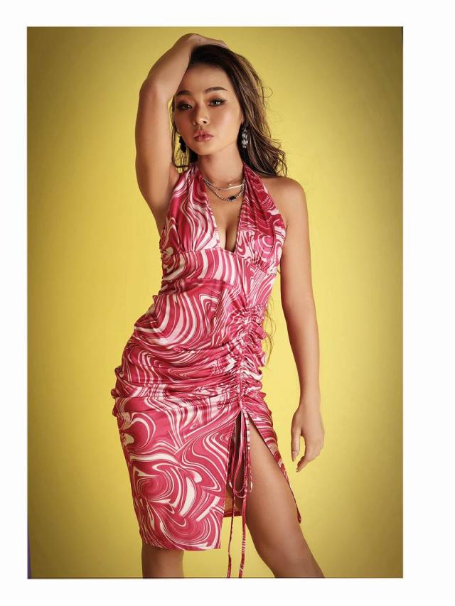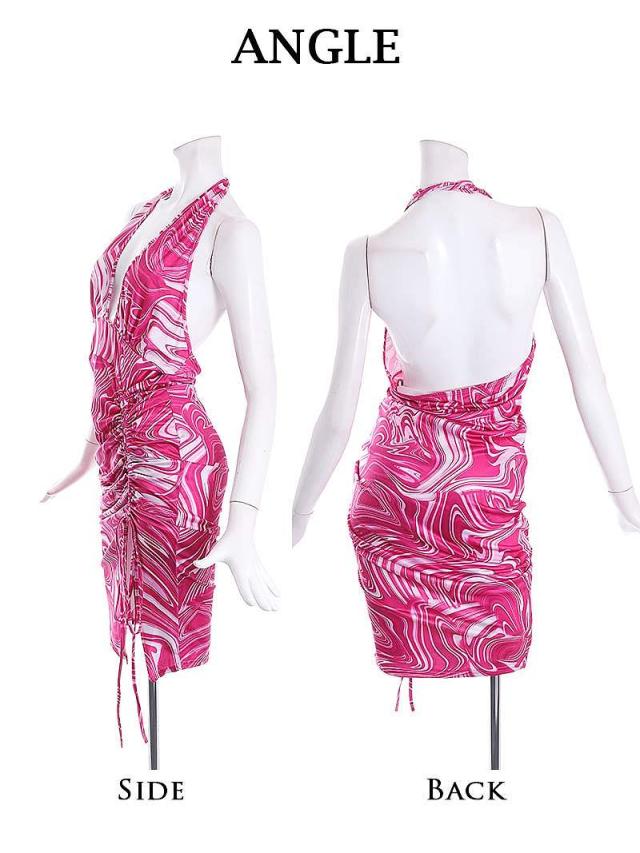 ワンピース Bbomb ピンク マーブル セクシ- 谷間