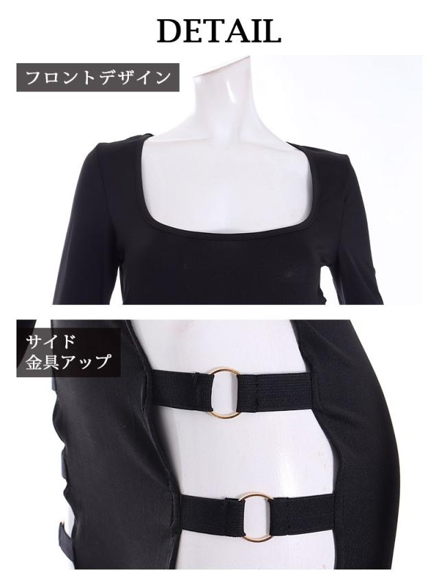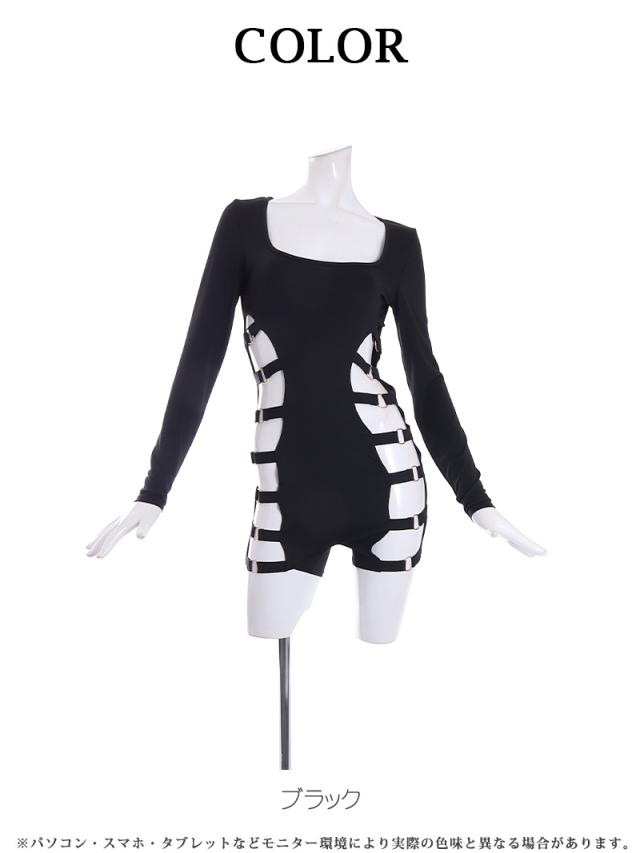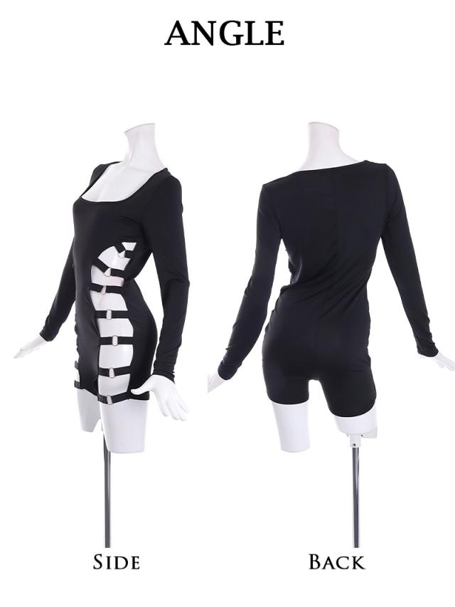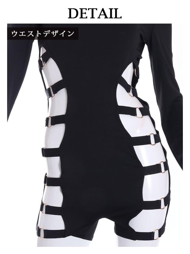☆太ももから脇まで続くカットアウトが超絶SEXYな個性派長袖オールインワン!
