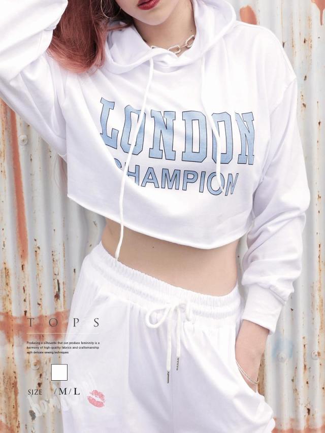 パーカー・トレーナー Bbomb ショート丈 パーカー 白 プリント