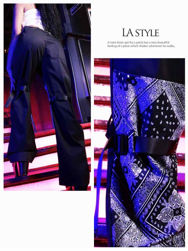 ☆ダンス衣装の大定番ロングサルエルパンツ!ペイズリー柄×モノクロカラーにベルト付きの特徴的なデザインがステージ上で映える