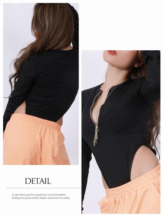 ☆フロントジッパーで大胆な谷間魅せができたり、自由に調節できるエロかわレオタード。
