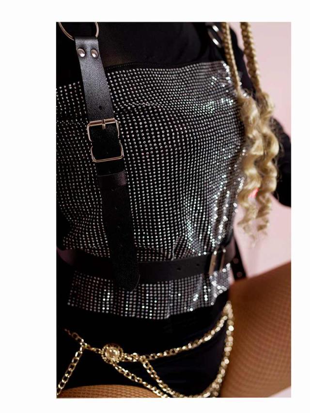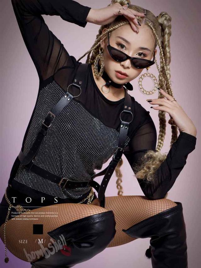 ☆着心地のいいさらっとした素材にギラッギラのクリスタルな輝きがまぶしい!ラインストーンをたっぷりのトップス。