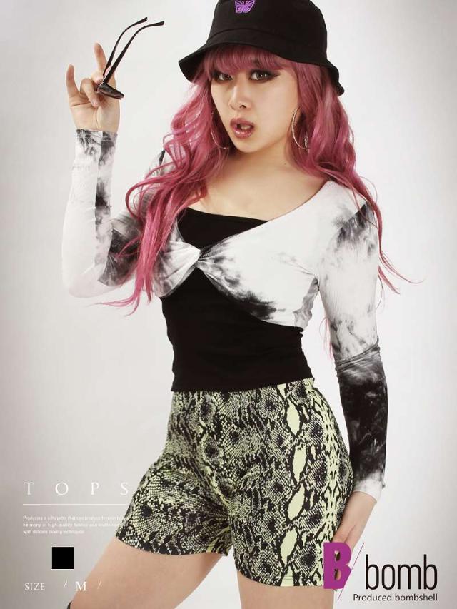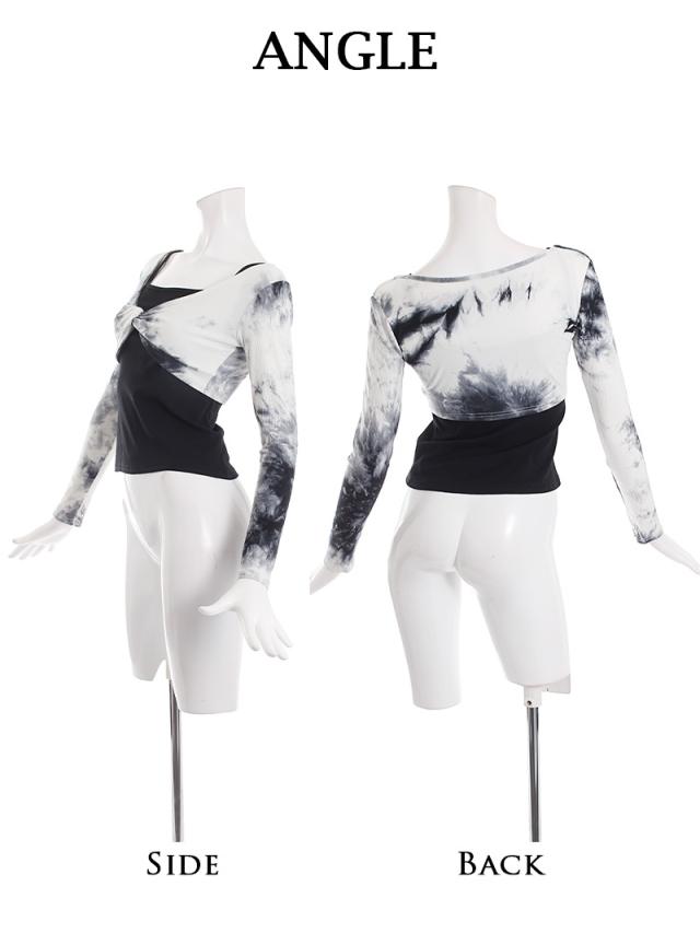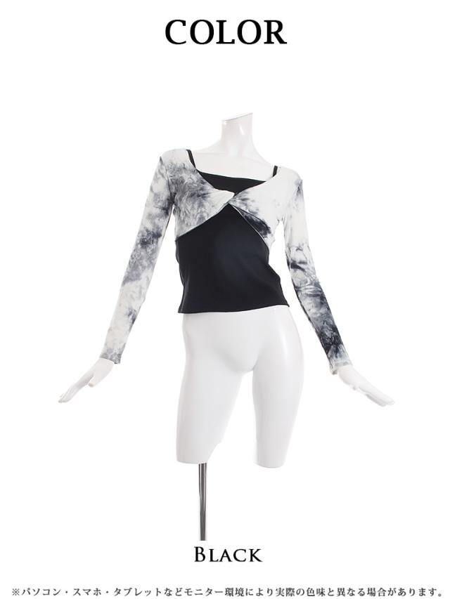 長袖カットソー Bbomb タイダイ柄 トップス クロスデザイン セットアップ