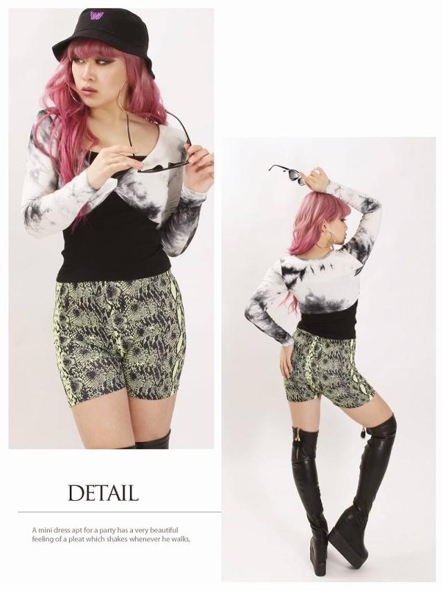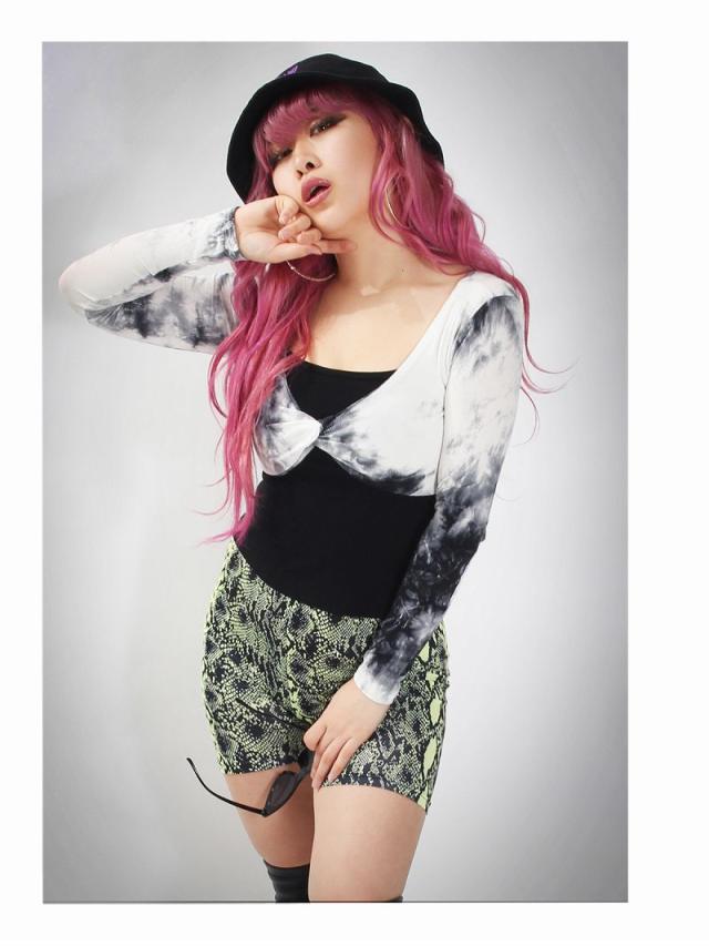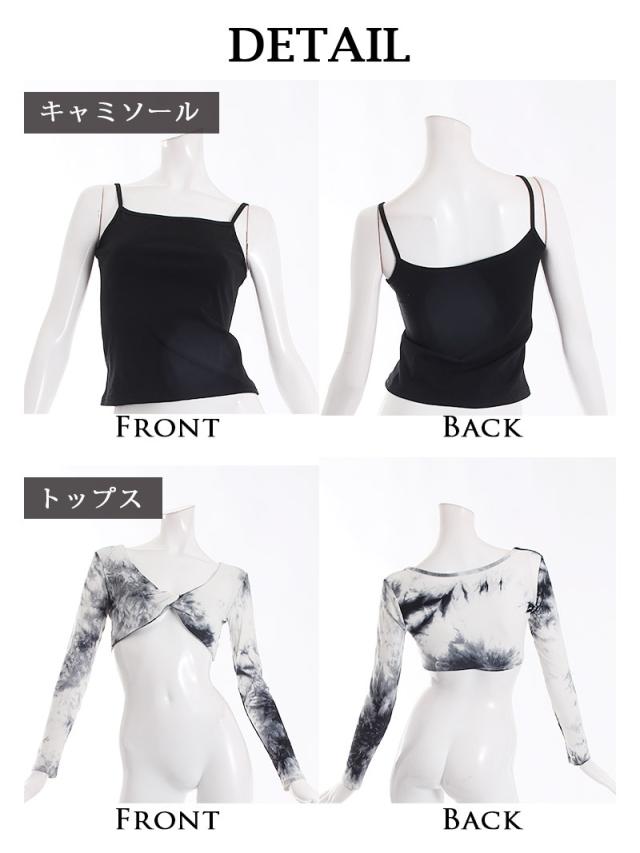 ☆お腹見せ×タイダイ柄は今っぽギャルにオススメ!2点セットの絞り染め柄ショート丈フロントクロスカットソー×ブラックキャミソールインナー♪