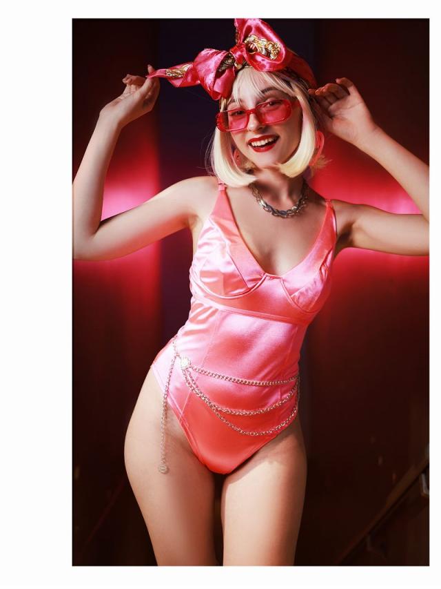 ☆インポート風のデザインで、ダンスの舞台衣装にもピッタリのサテンボディウェア♪