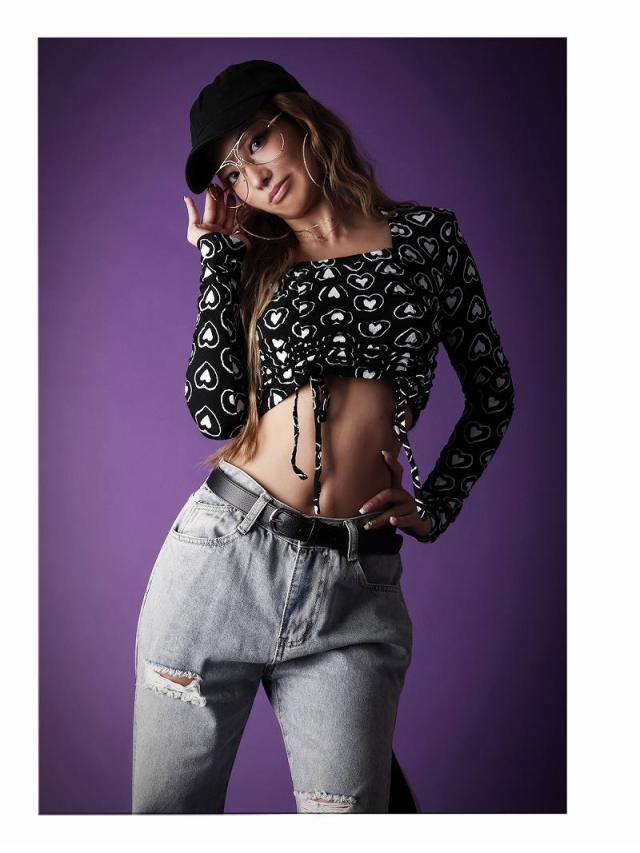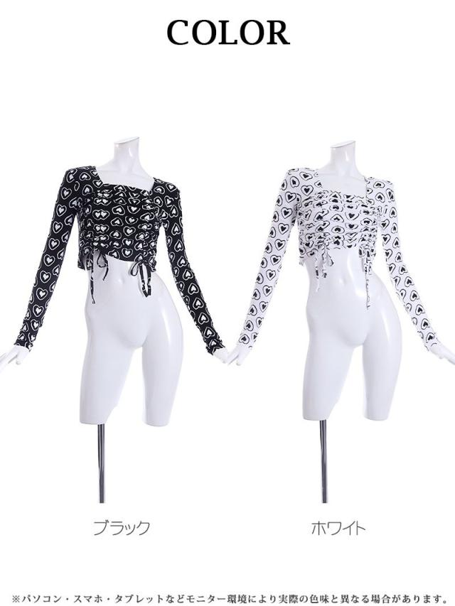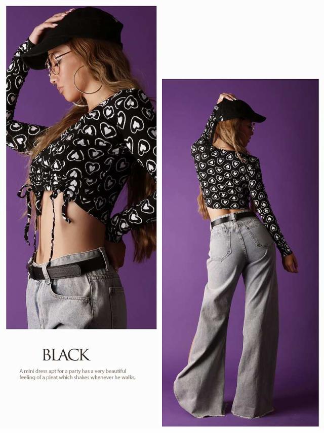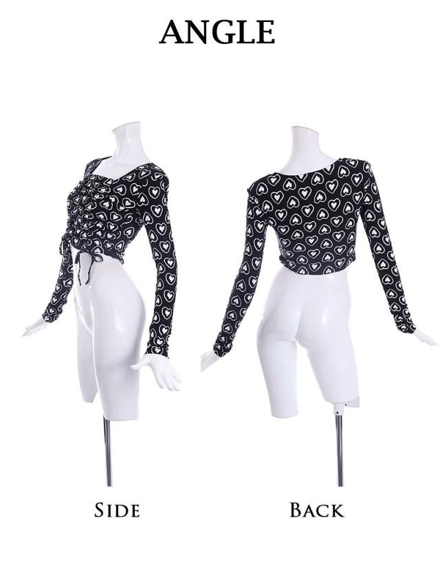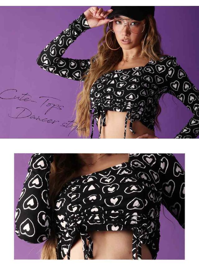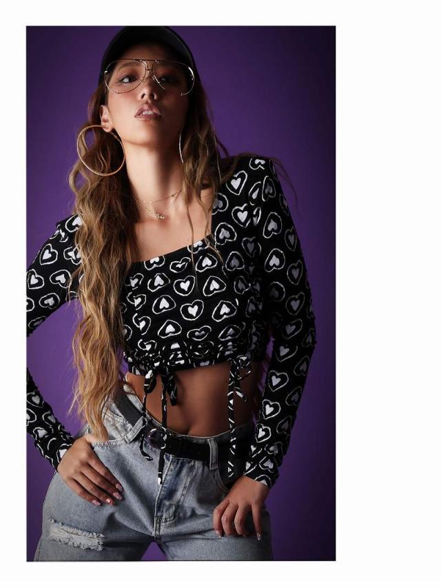 ☆ダンサーさんのガーリーコーデやアメリカンポップファッション、KPOPファッション、LA風ファッション好きにオススメのダブルハート柄プリント長袖カットソー!