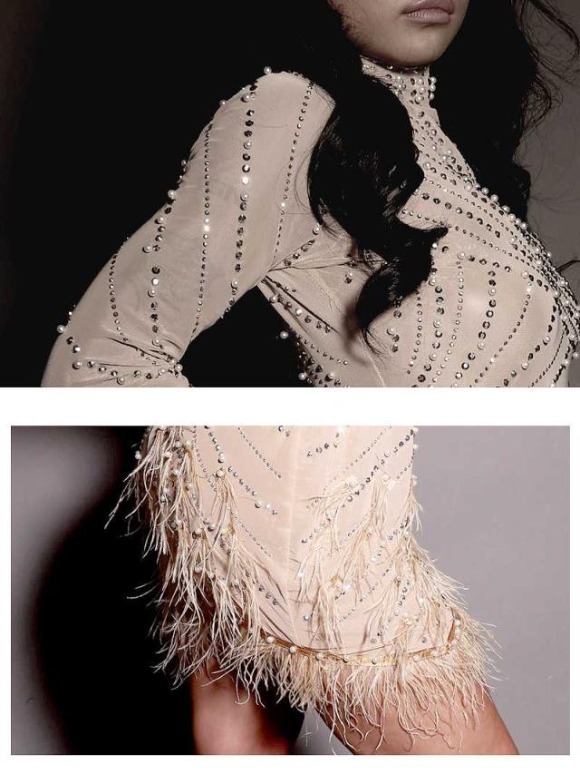 ワンピース bombshell ステージ衣装 パール ビジュ- フリンジ付き