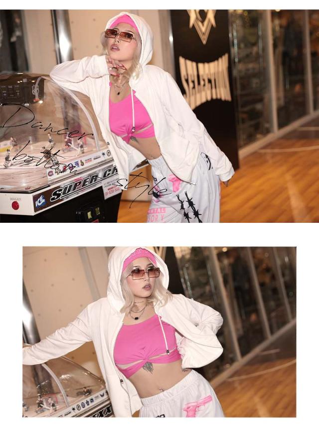☆シンプルな無地のフーディーなのでダンスのレッスン着やワークアウト、部屋着と着回しやすいダンスファッション。