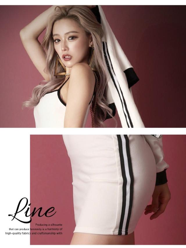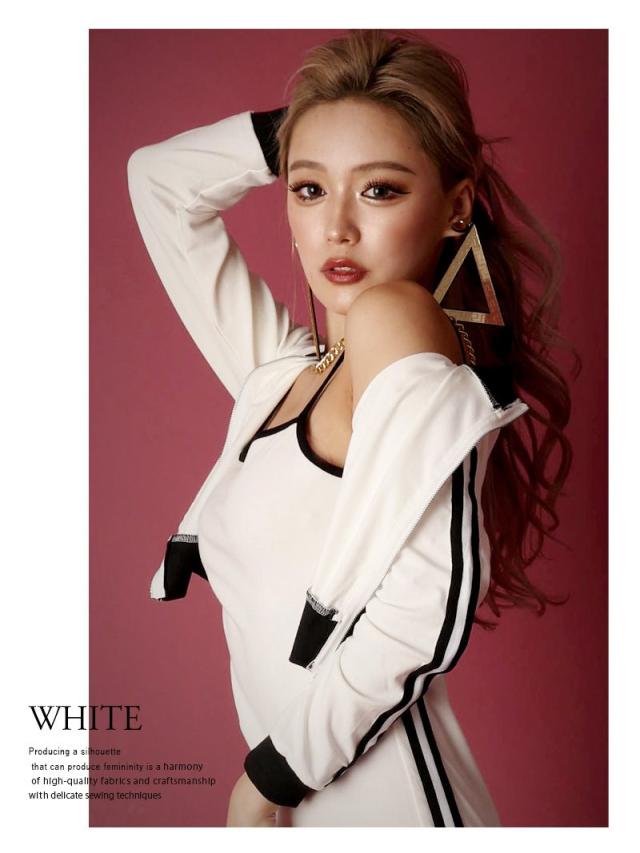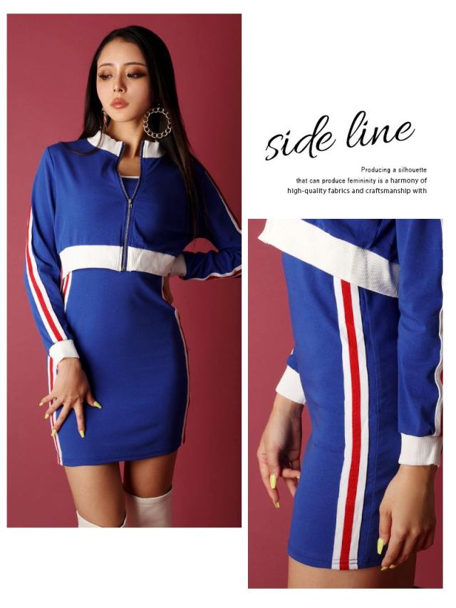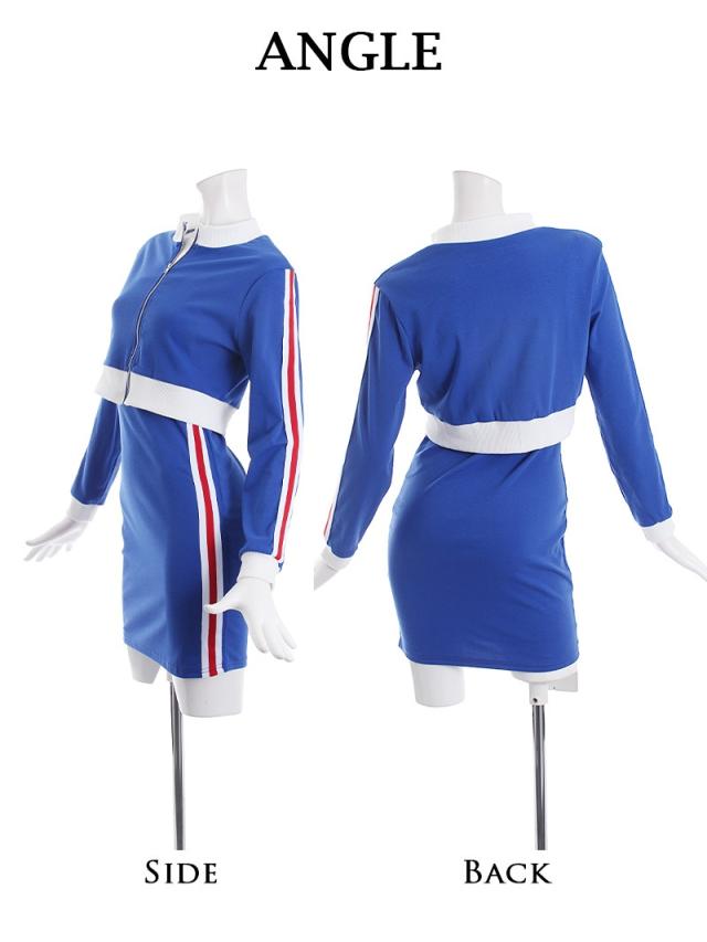 ☆サイドラインがスポーティで映える!ジャージ風ミニワンピース×前開きジップ長袖カットソー2点セット!