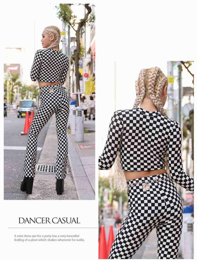 セットアップ Bbomb セットアップ チェッカー柄 ショ-ト丈 伸縮性抜群