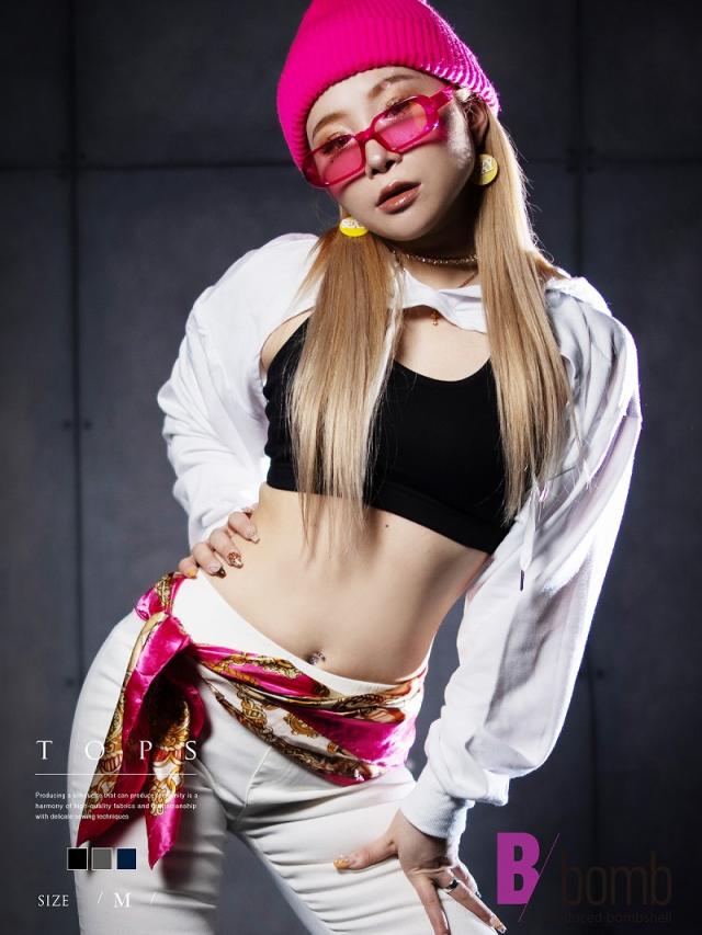 ☆HIPHOP系B系ストリートファッションとも相性抜群のへそ出しベアトップは、ヨガウェアやトレーニングウェアなどスポーティなコーデにもバッチリなショート丈キャミソール!