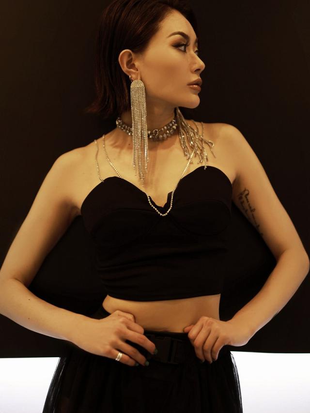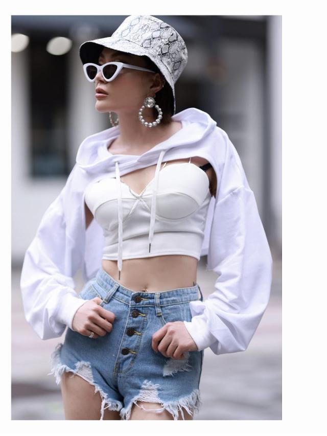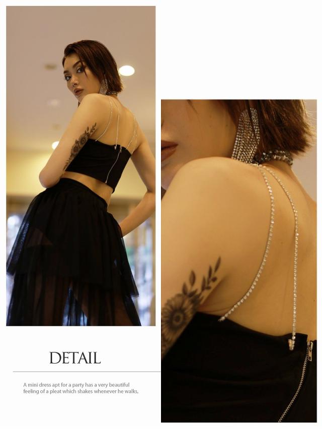 ☆ショート丈デザインでセクシーなお腹見せ&へそ魅せができ、バックファスナーで後ろ姿もセクシーにキマるダンス衣装。