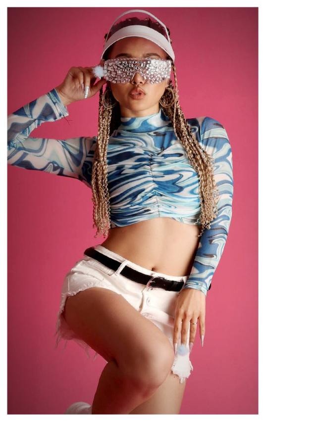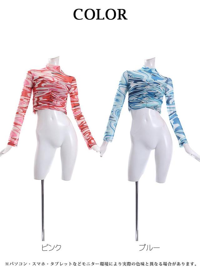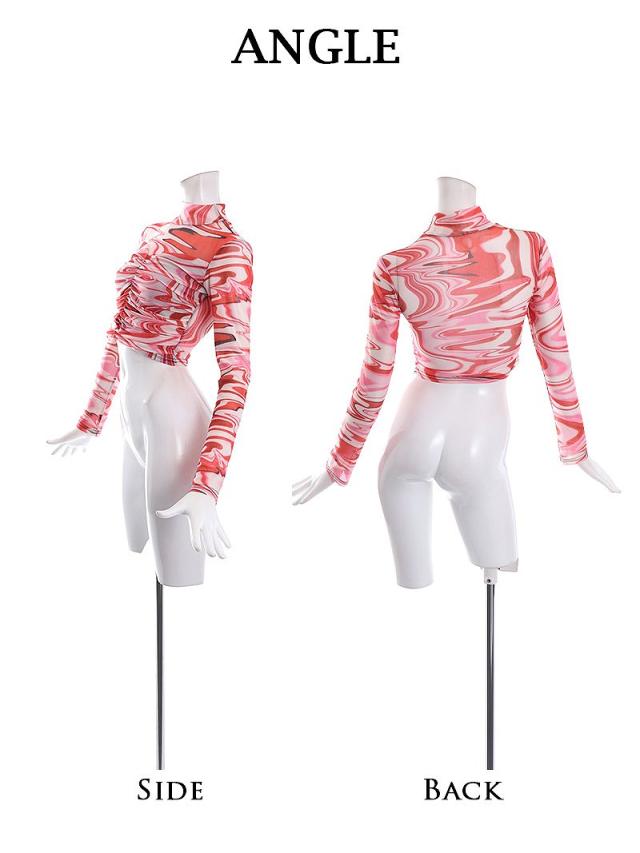 ☆ショート丈のマーブル柄メッシュトップス。セクシーさが光るダンス衣装として最適。ステージ衣装にも映えるトップス。