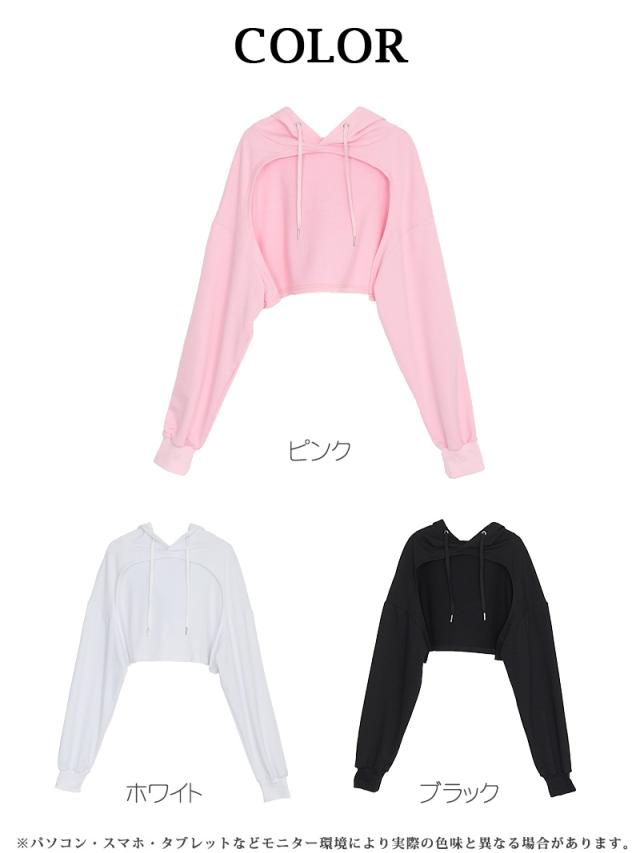 ☆キャミソールやベアトップやビスチェなど好きなインナーを合わせることで個性的なコーディネートを楽しむことができるスウェットパーカー。