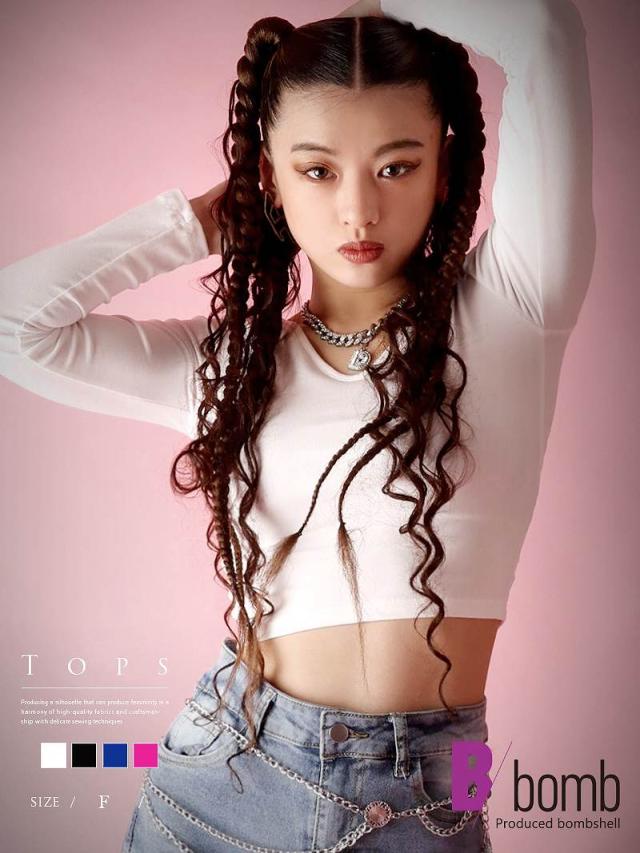長袖カットソー Bbomb シンプル 無地 ショ-ト丈 長袖