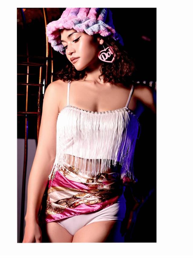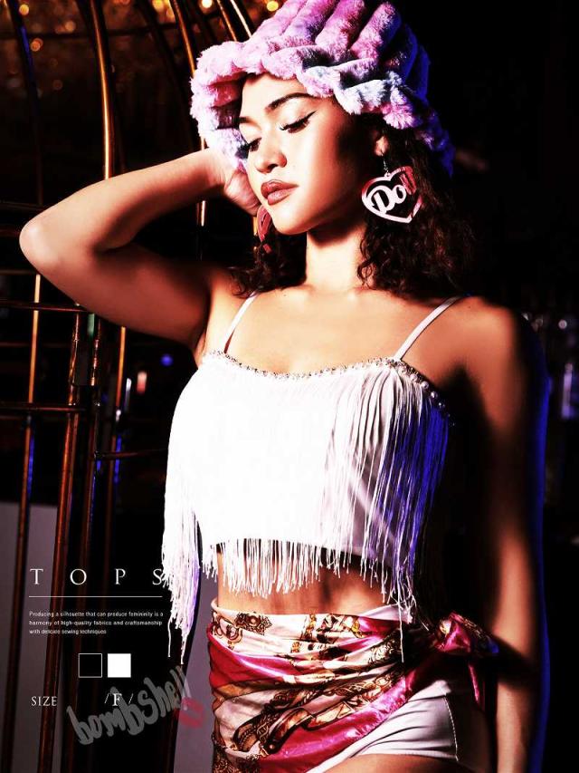 ☆ステージ映え抜群のカップ付きショート丈トップスは動く度にフリンジが揺れ動いて注目されちゃうダンス衣装!