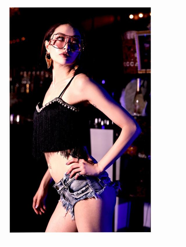 ☆へそ出しがエロかっこいい短丈キャミソールはショーダンサーの舞台衣装はもちろん、クラブイベントのステージ衣装やダンスコスチューム、LA風ファッション、KPOPファッションにも着回しできる◎