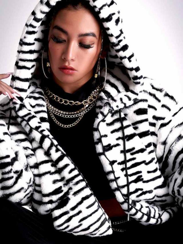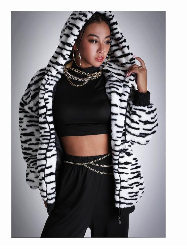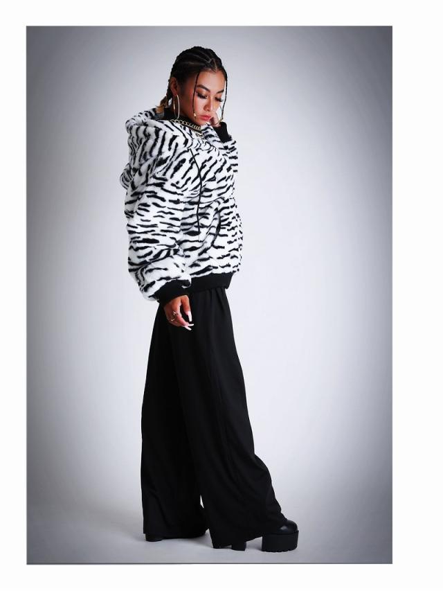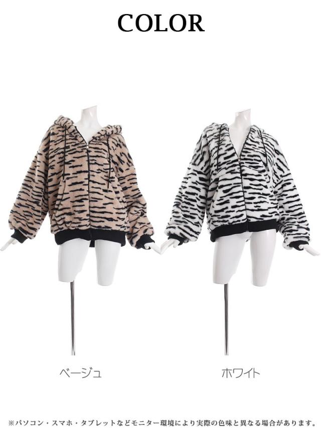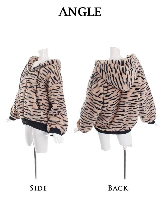 ☆ゆるだぼシルエットに大きめフードがついたオーバーサイズのアニマル柄フーディは、クラブイベントが大好きなパーティガールにもオススメ!