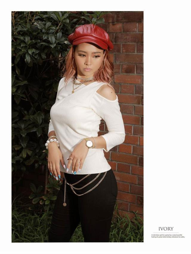 ☆アシンメトリーな変形ワンショルデザインがちょっぴりセクシーなカットソーは、程よい肌魅せがポイント。