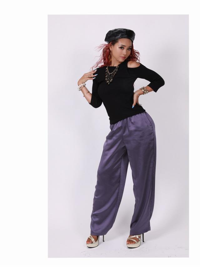 ☆パンツスタイルにもスカートスタイルとも相性抜群で、ダンサーさんが大好きな柄物ともあわせやすいワンカラートップス。
