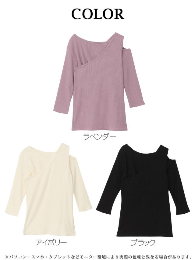 半袖カットソー Bbomb アシンメトリー 変形トップス 7分袖 リブ