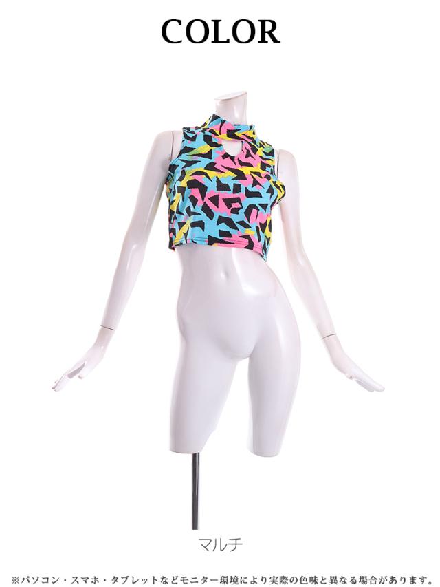 ☆ダンス衣装やステージで映えるモザイク柄ノースリーブは、イベントやフェス、クラブコーデでも映えるから周りの視線を独り占め出来ちゃうこと間違いなし♪