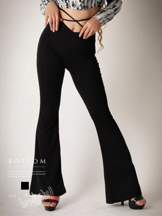 パンツ・サルエルパンツ Bbomb ストレッチパンツ レギパン 編み上げ ブラック