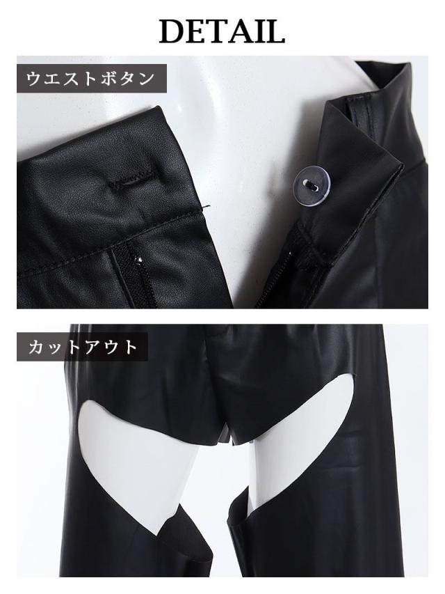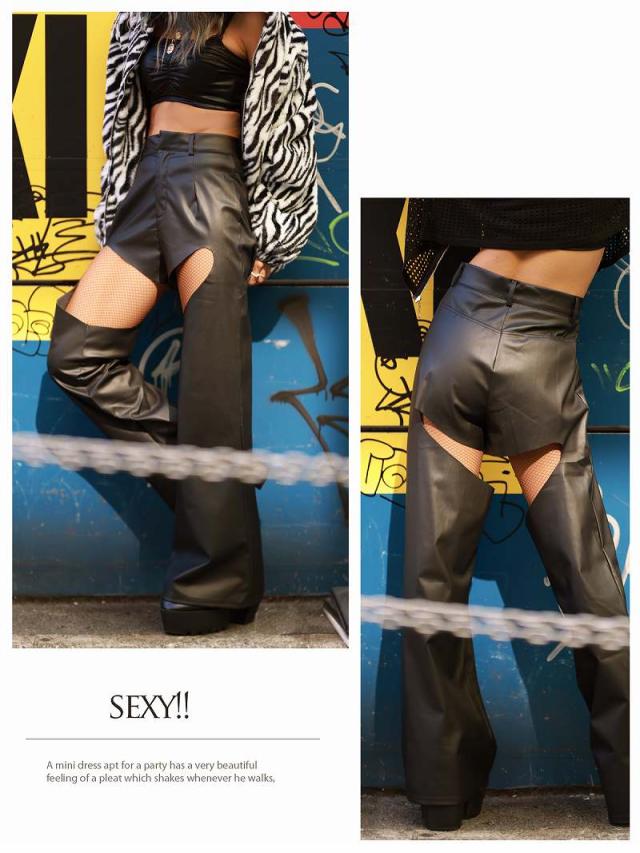 ☆踊りやすくダンス衣装やコスチュームにもピッタリのフェイクレザー素材ロングパンツ。