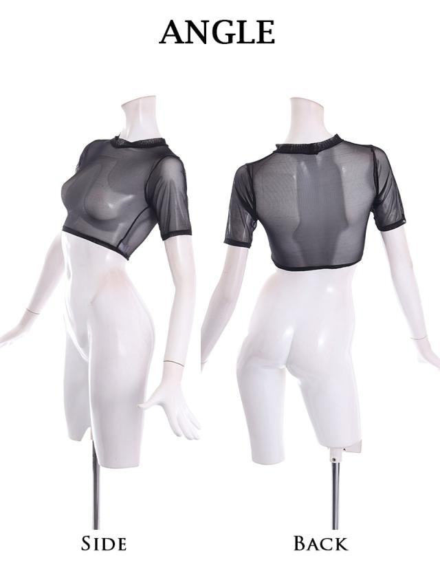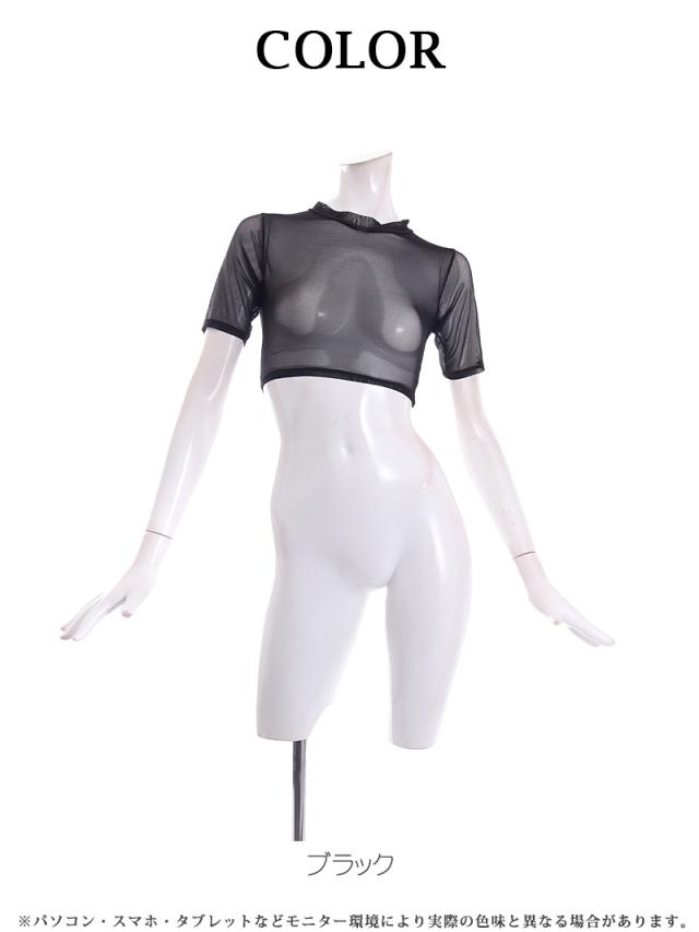 ☆絶妙に透ける肌がエロかっこよさを演出してくれるシースルーミニ丈トップスは、派手色のインナーやビジューブラ、ビスチェとの相性抜群だからダンス衣装やステージ衣装にぴったりのITEM◎