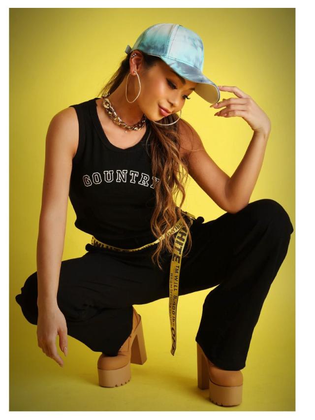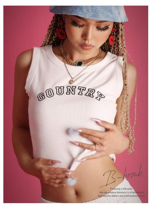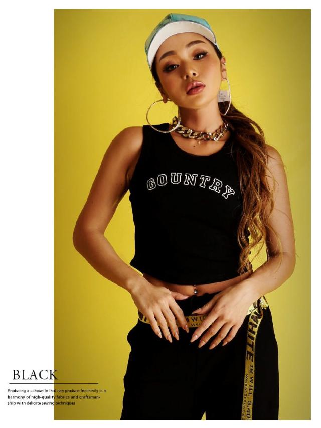 ☆ノースリトップスはショート丈だからへそ出しコーデも出来る♪