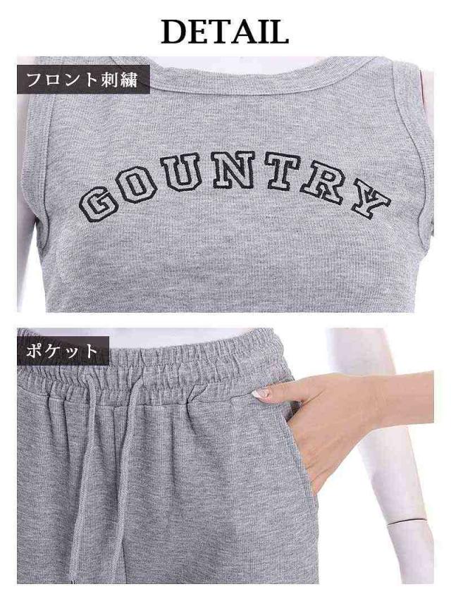 ☆刺繍ロゴ入りタンクトップ&スウェットロングパンツの2点セットアップ!