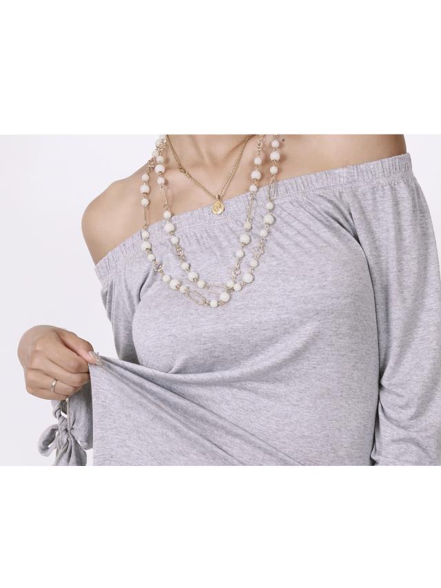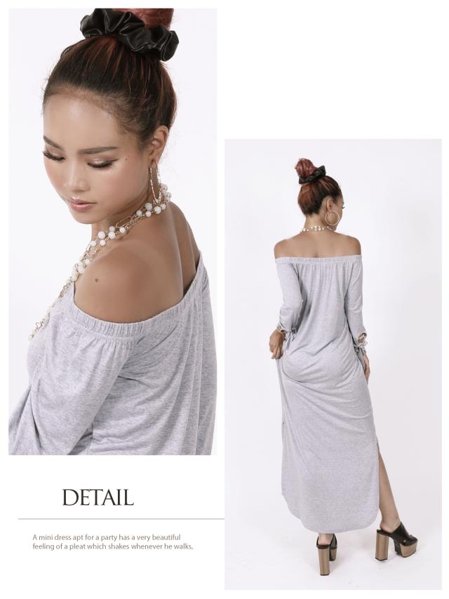 ☆オフショルで大胆にデコルテを見せたりワンショルにして程よく肌をチラ見せさせたり、その日の気分でコーディネートを楽しめるロングワンピース。