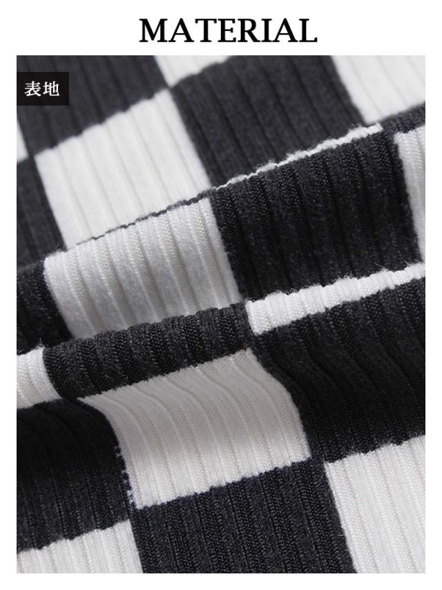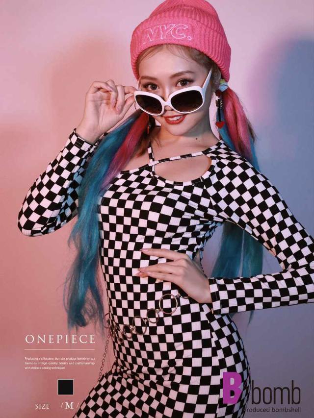 ワンピース Bbomb ワンピース リブニット カットアウト チェッカ-柄