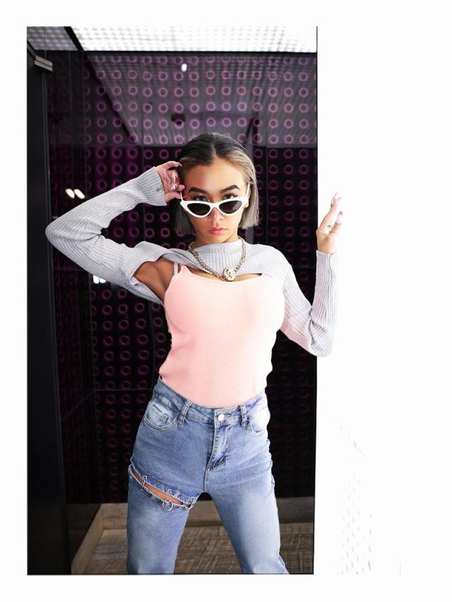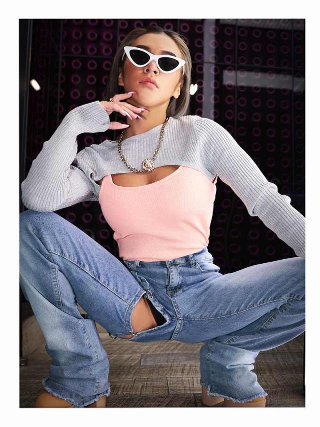 ☆セクシーなボディラインを演出してくれる長袖ニットは、ダンサーにオススメな短丈トップス。