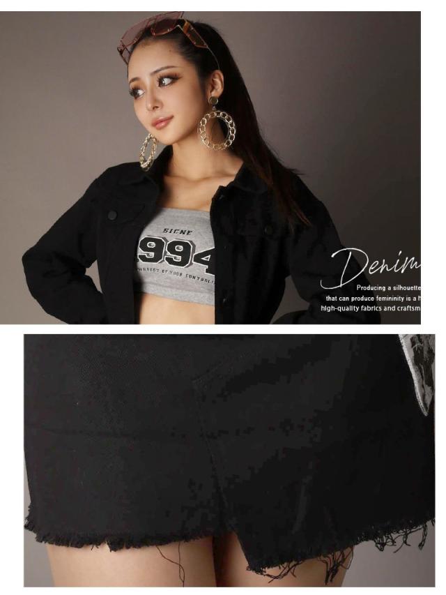 ☆裾の切りっぱなしのクラッシュ加工がステージ衣装やダンサーの普段着にもオススメのデニムセットアップ。