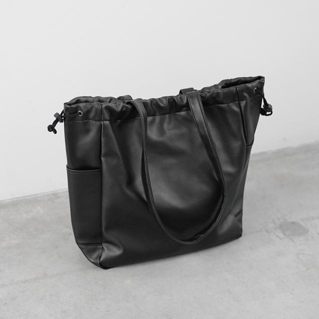 シンプルなデザインながらも大容量なトートバッグ。シンプルさの中にも、口をドローコーデで絞れるデザインなど遊び心のあるアイテムです。マグネットボタンや内ポケットを含め機能性も申し分なし。ノートパソコンやA4サイズのファイルなどを収納可能で使い勝手の良いトートバッグです。