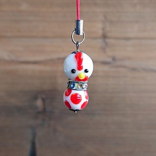 スマホストラップ スマホ タブレットアクセサリー 周辺機器 タブレット パソコン ガラス トンボ玉 動物 根付 ニワトリ 一つ一つ丁寧 【送料無料】