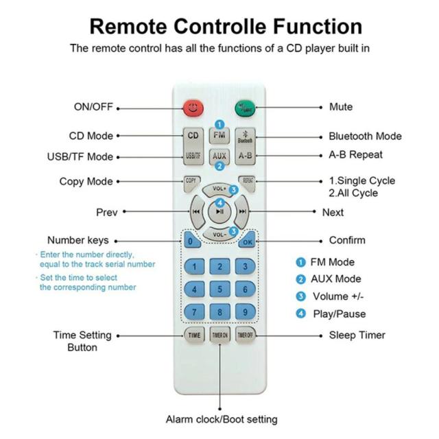 【特別なコピー機能】「コピー」機能は、CD 再生中にリモコンの「コピー」ボタンを使用して、各 CD からお気に入りの音楽を TF カードまたは USB フラッシュ ドライブにコピーするように設計されています。将来的には、応答性の高い CD を探すことなく、お気に入りのアコースティック音楽を直接聴くことができるようになります。