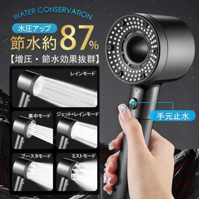 シャワーヘッド 節水 マイクロナノバブル 手元止水 5段階モードウルトラファインバブル ミスト 肌ケア保温保湿 美肌 高洗浄力 毛穴汚れ除去 取付簡単 母の日