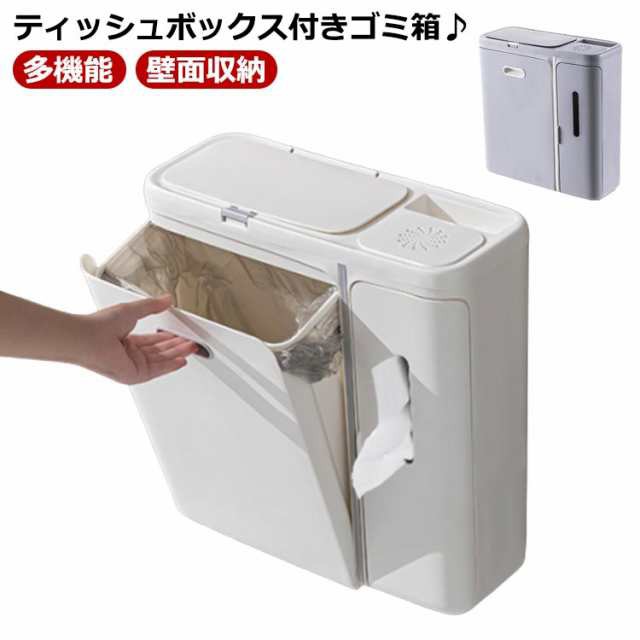 ティッシュケース キッチン ゴミ箱 多機能 くずかご 入れ 洗面所 ティッシュ 浮かせる収納 ダストボックス フタ付き アロマケース ごみ箱 トイレ サニタリー リビング ウォールダストボックス 卓上 3in1
