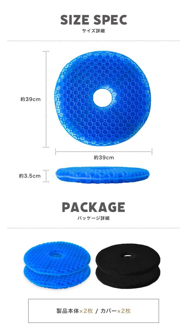 円座クッション 痔 産後 ゲルクッション ジェルクッション 円座 2枚セット ハニカム 二重 座布団 クッション 椅子用 車 オフィス テレワーク 腰痛 肩こり 姿勢矯正 カバー付 滑り止め 卵が割れない 無重力