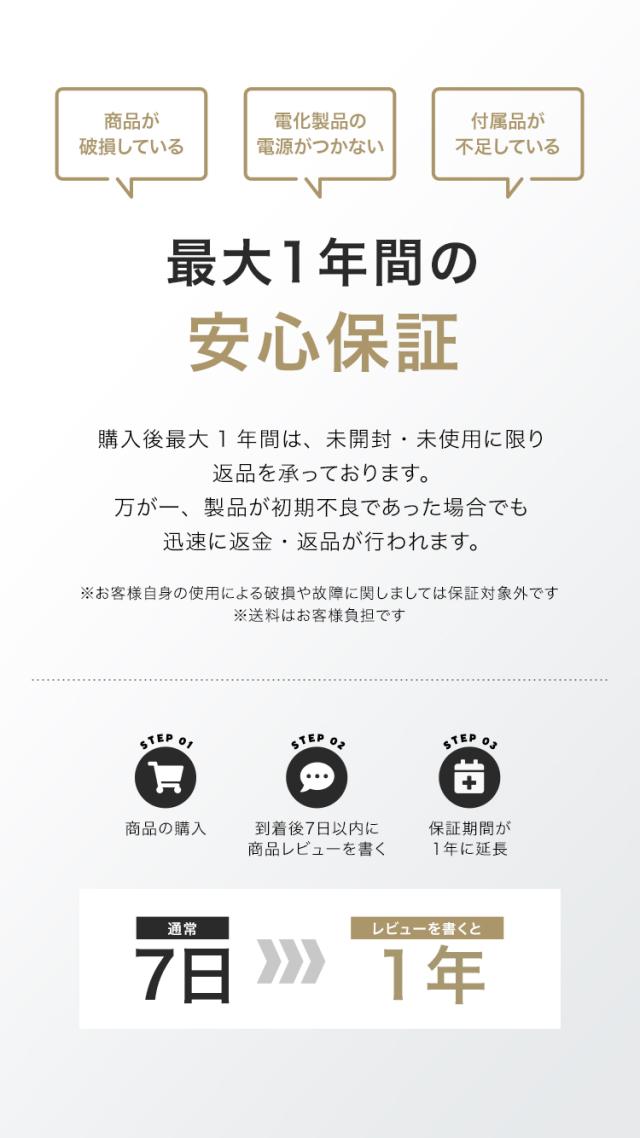 また、ご購入後にレビューを投稿していただけましたら、通常7日間の保証期間を「1年間」へ延長いたします。