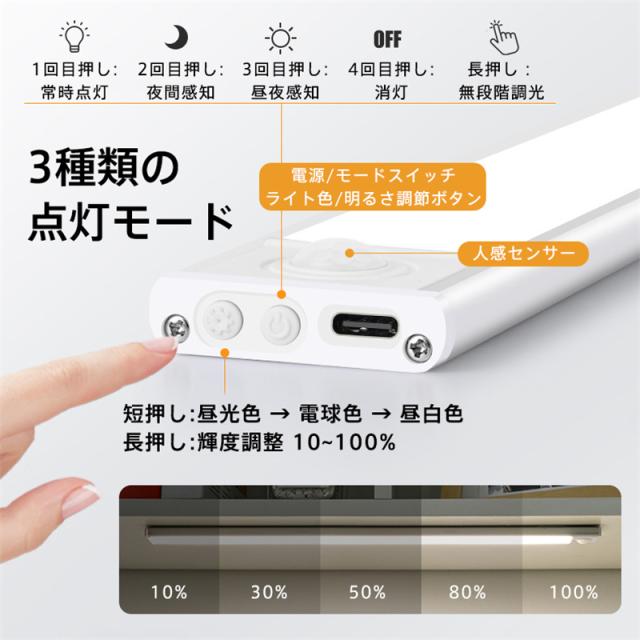 センサーライト 室内 usb充電 人感センサーライト マグネット式 3段階調色 LED フットライト 足元 玄関 廊下 トイレ 防