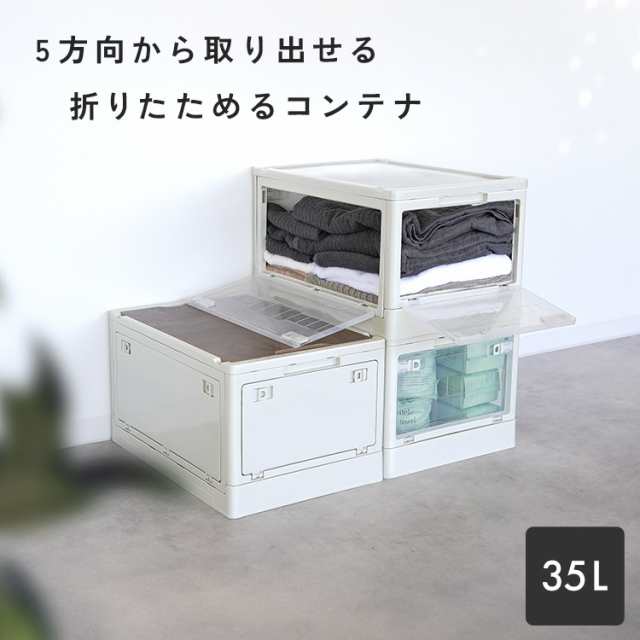 収納ボックス 折りたたみ 収納ケース 積み重ね 折りたたみコンテナ ふた付き 屋外 おしゃれ かわいい 5面開き 中身が見える 衣類収納 衣装ケース アウトドア キャンプ 折りコン 大容量 35L クリア くすみカラー 北欧 木目 アイボリー