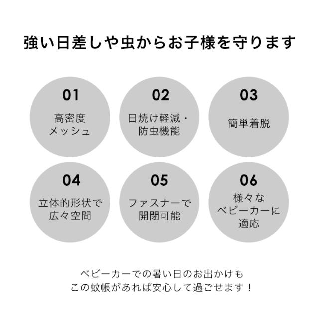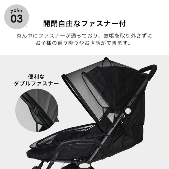 ベビーカー 蚊帳 虫除けカバー 日よけ ベビーカーカバー モスキートネット ファスナー メッシュ 虫よけ 蚊除け 幼児 赤ちゃん お出かけ 簡単 装着 つけたまま 乗り降り