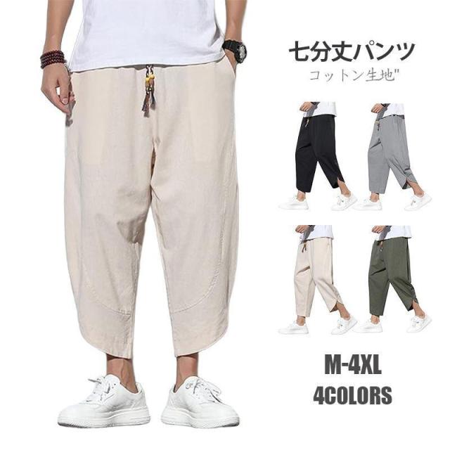 サルエルパンツ メンズ 夏 ゆったり 7分丈 無地 薄手 ハーフパンツ おしゃれ 大きいサイズ