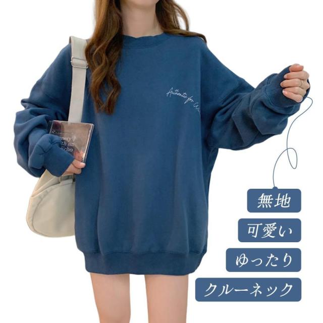 トレーナー レディース 長袖 ロゴ パーカー スウェット ゆったり クルーネック カジュアル トップス プルオーバー おしゃれ 大きいサイズ 体型カバー 可愛い か