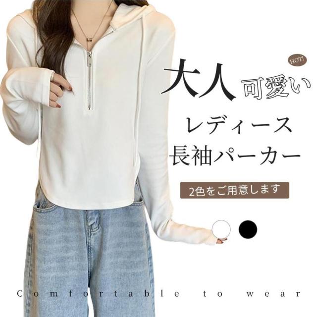 パーカー レディース カジュアル 長袖 ジップアップ スウェット 春 秋 冬 ゆったり トップス トレーナー フード付き おしゃれ プルオーバー 大きいサイズ 薄手