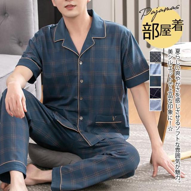 パジャマ メンズ 半袖 前開き 入院 寝巻き 春 夏 薄い 家着 コットン 上下セット ルームウェア 父の日 部屋着 ナイトウェア 敬老の日